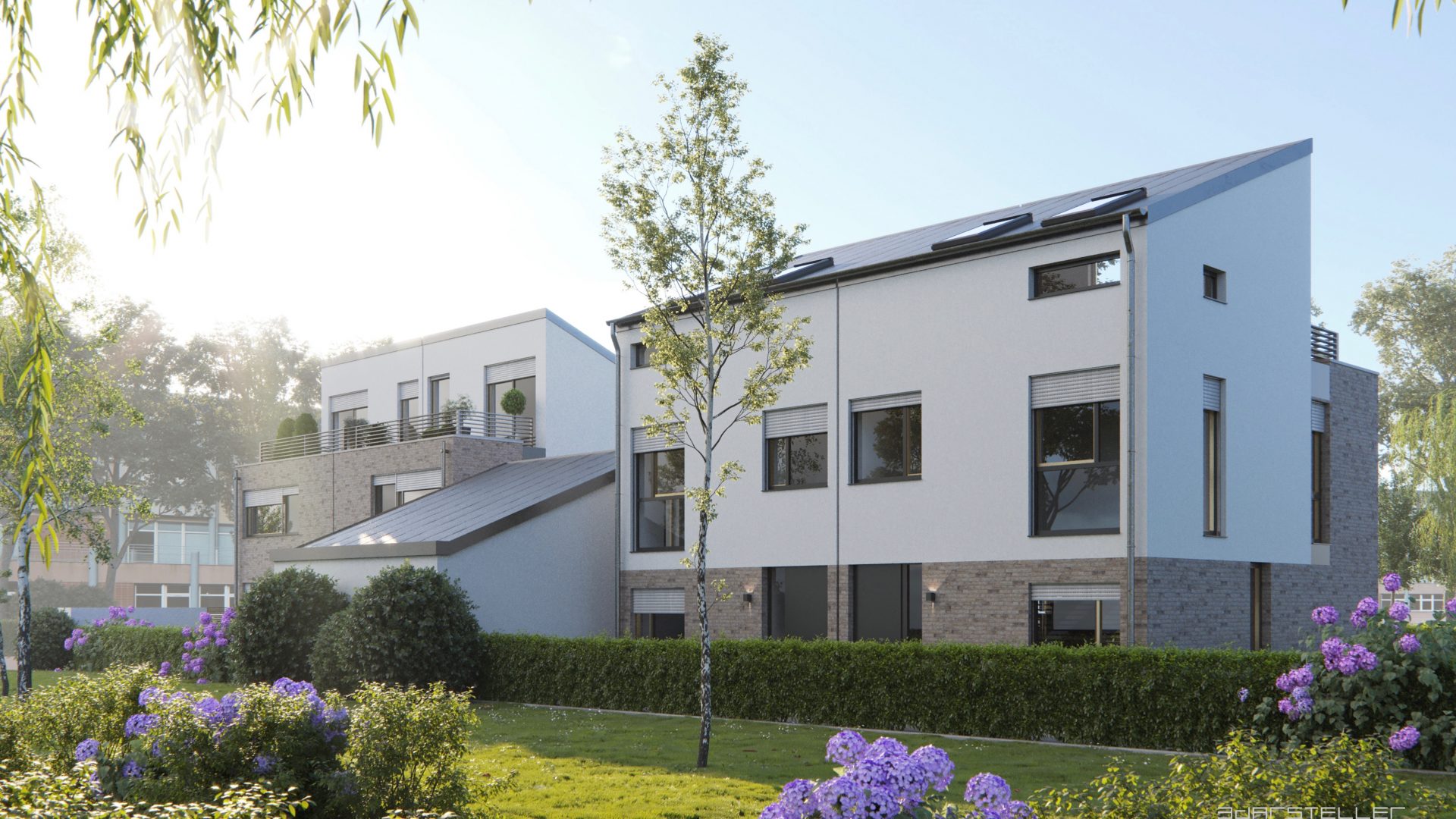 In Weiden, dem familienfreundlichen Stadtteil im äußersten Westen Kölns entstehen aktuell vier Wohneinheiten in Form eines großzügigen Doppelhauses sowie zwei Reihenhäusern. In bevorzugter Lage realisiert die Peters Bauträger GmbH hier großzügige Wohnungen, die den zukünftigen Bewohnern nicht nur aufgrund des  hervorragenden Standorts, sondern auch mit einer modernen und durchdachten Ausstattung ein Höchstmaß an Wohn- und Lebensqualität bieten. Hochwertige Bodenbeläge und Sanitäreinrichtungen, Fußbodenheizung, Garagen, Aufzug, Gegensprechanlagen, Wärmeschutz und viele weitere Ausstattungsdetails lassen keine Wünsche offen und sorgen für jede Menge Wohnkomfort.