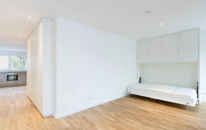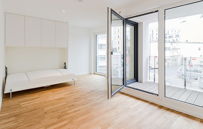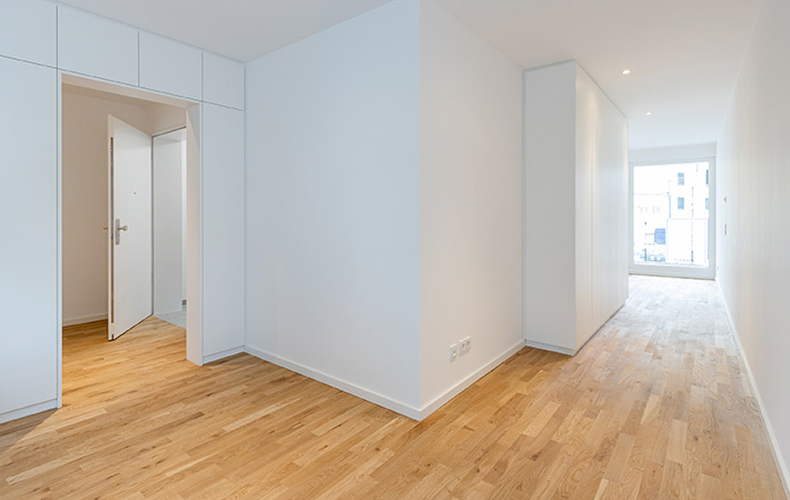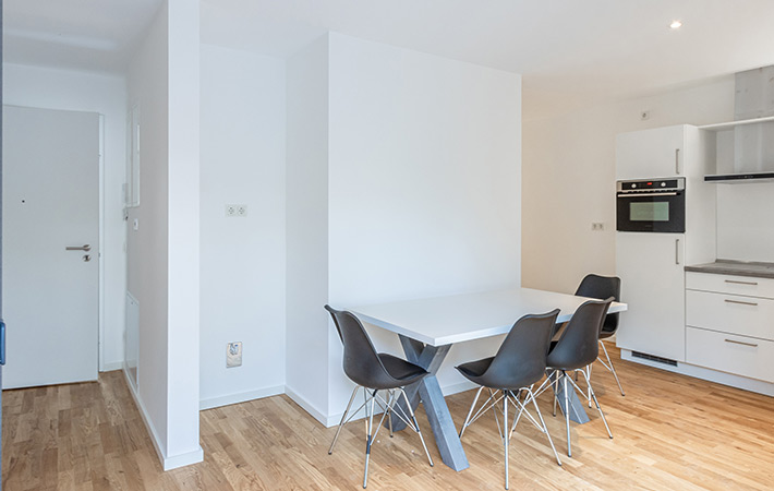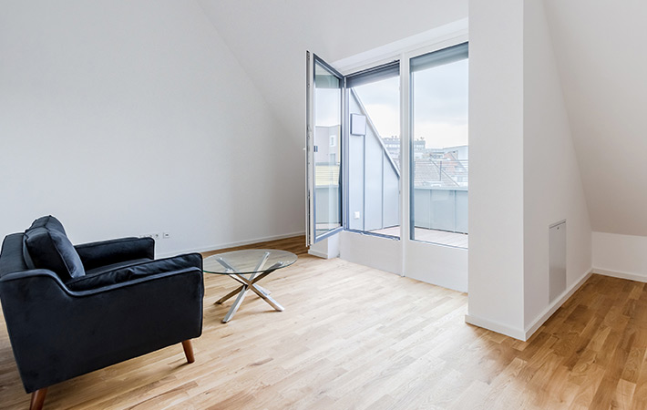 Helle Fenster, eine erstklassig ausgestattete Küche mit Ceranfeld, moderne Möbel und eine hochwertige Garderobe im Eingangsbereich sind nur einige der vielen Ausstattungsdetails, die eine optimale Lebensqualität bieten. Die Wohnungen sind wahlweise ausgestattet mit Terrasse, Loggia oder Dachterrasse.